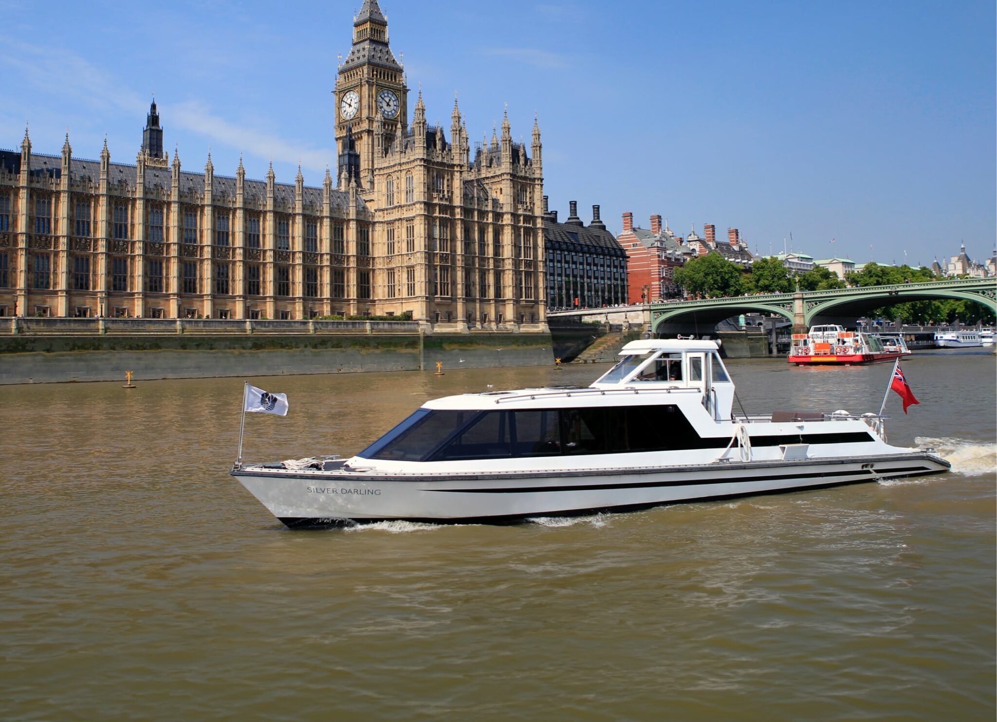 For those seeking the most exclusive Thames experience, the Silver Darling offers unparalleled intimacy and luxury. This 15-metre high-speed river cruiser provides the smartest and most fashionable way to experience London from the water. The interior, designed by Matthew Hilton, features butter-sof...