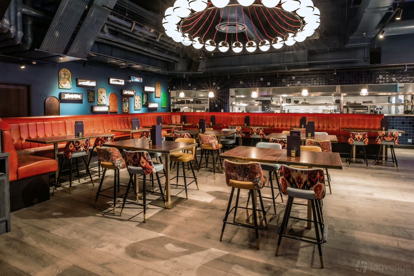 A semi-private area combining restaurant, private rooms and bars, ideal for up to 200 guests.