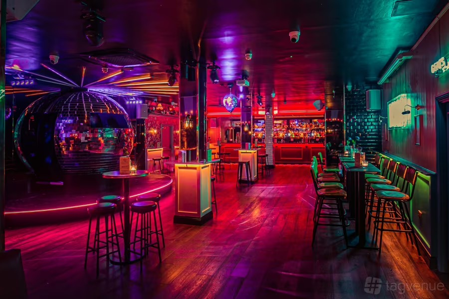 The full venue hire offers exclusive access to both floors of Simmons | Holborn, each featuring its own dedicated bar. Ideal for large-scale events like weddings, corporate functions, or big parties, it can accommodate up to 450 standing or 200 seated guests. The venue is centrally located with excellent transport links and features two DJ booths, disco ball lighting, a photobooth, and comprehensive AV equipment. This hire option ensures privacy and flexibility for high-energy events with a professional team supporting the experience.